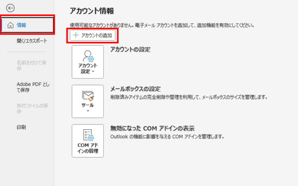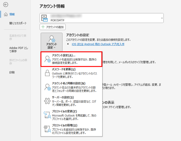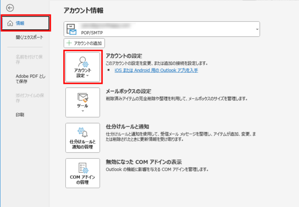 - ファイル>情報>「アカウント設定」へ進みます。