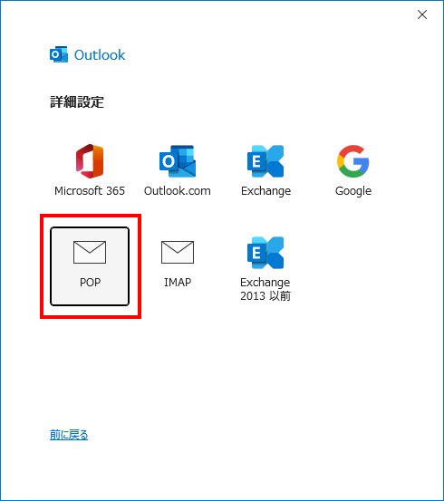 - 詳細設定の画面が表示されますので『 POP 』をクリックします。