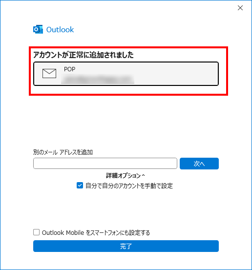 - アカウントの追加が完了した画面が表示されます。