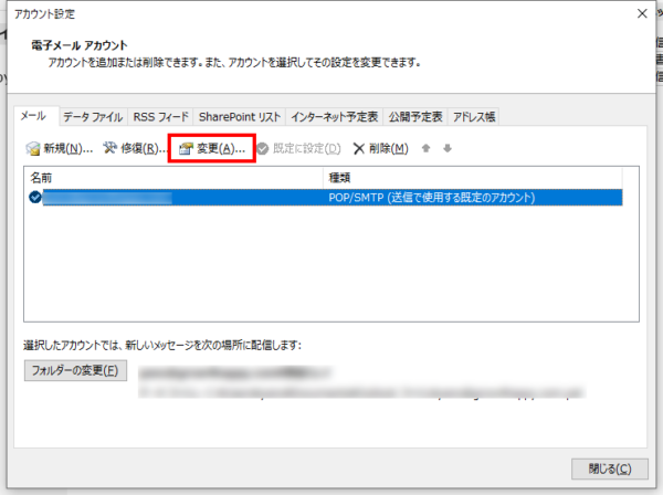 - 編集するメールアカウントを選択して、『変更』をクリックします。