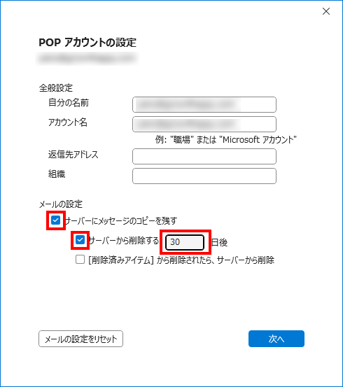 - 『サーバーから削除する』のチェックを外して、『次へ』をクリックします。